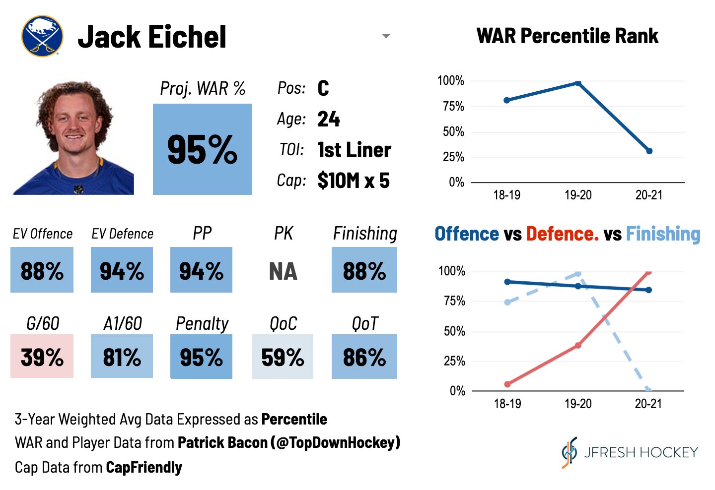 Chicago is one of the teams that has entered the sweepstakes to acquire Buffalo Sabres center and team captain Jack Eichel. Jack Eichel Career Stats. Jack eichel advanced stats.